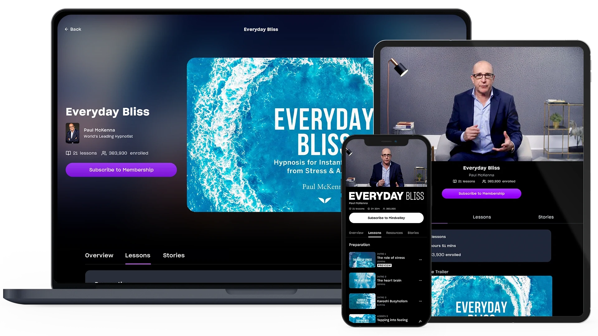 Everyday Bliss is Mindvalley's breakthrough program with Paul McKenna—built on decades of pioneering work in NLP and hypnotherapy to free you from stress, fear, and anxiety.