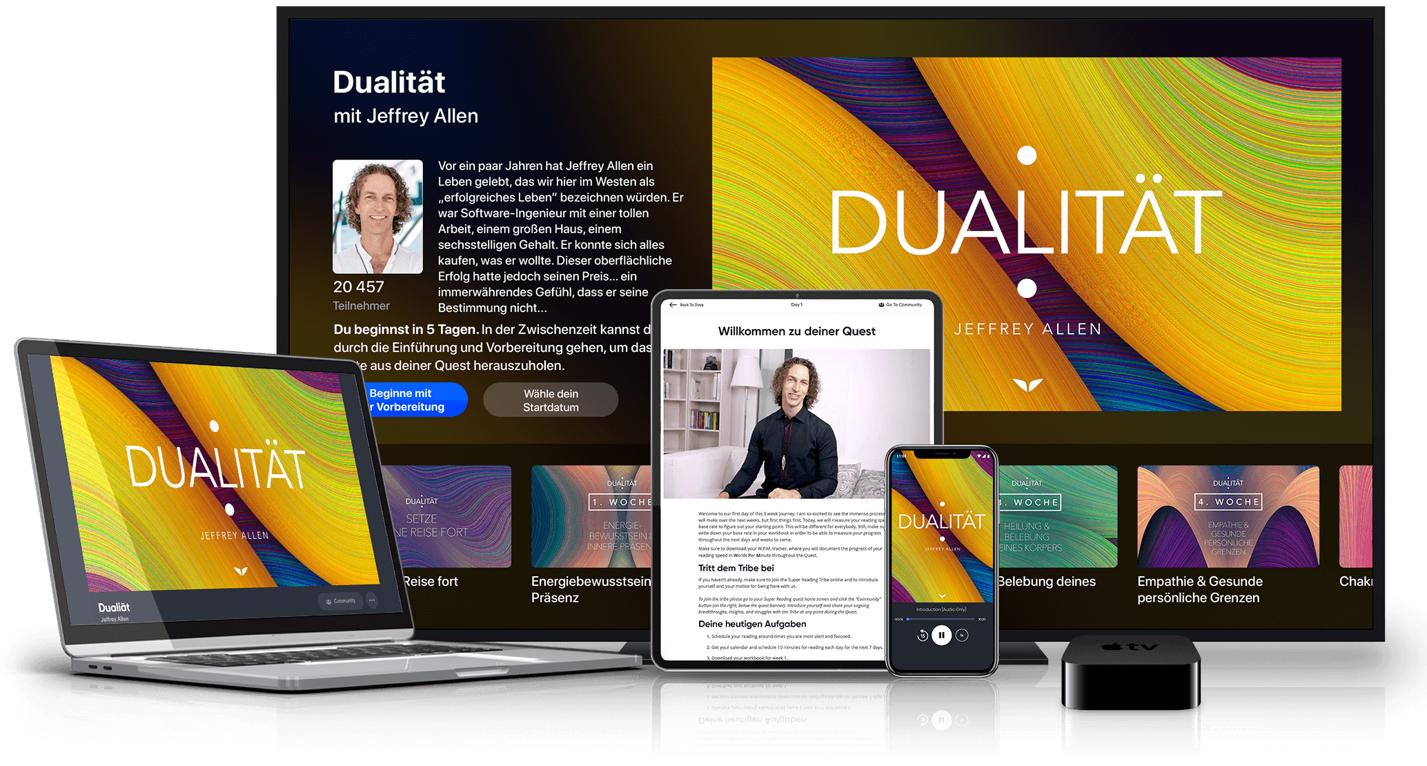 In Dualität hilft dir der gefeierte Energieheiler Jeffrey Allen dabei, deinen Energiekörper zu entdecken und dich mit ihm zu verbinden, damit auch du höhere Stufen der Selbstbeherrschung, des spirituellen Bewusstseins und emotionaler Glückseligkeit erwecken kannst, sowohl auf energetischer Ebene mit dir selbst, als auch auf körperlicher Ebene.