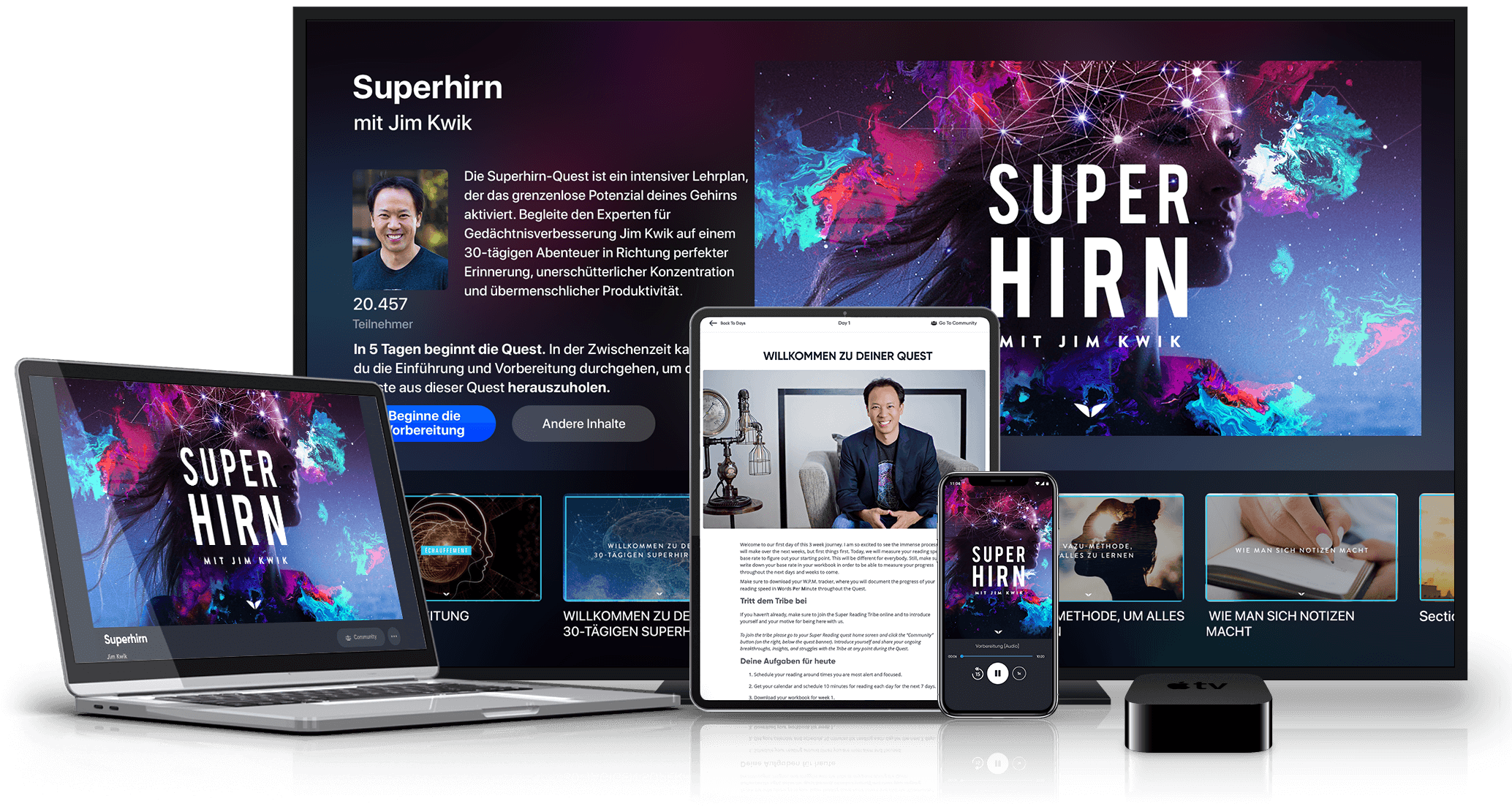 Die Superhirn-Quest mit Jim Kwik ist ein beschleunigtes Lernprogramm, das entwickelt wurde, um das grenzenlose Potenzial deines Gehirns zu aktivieren.