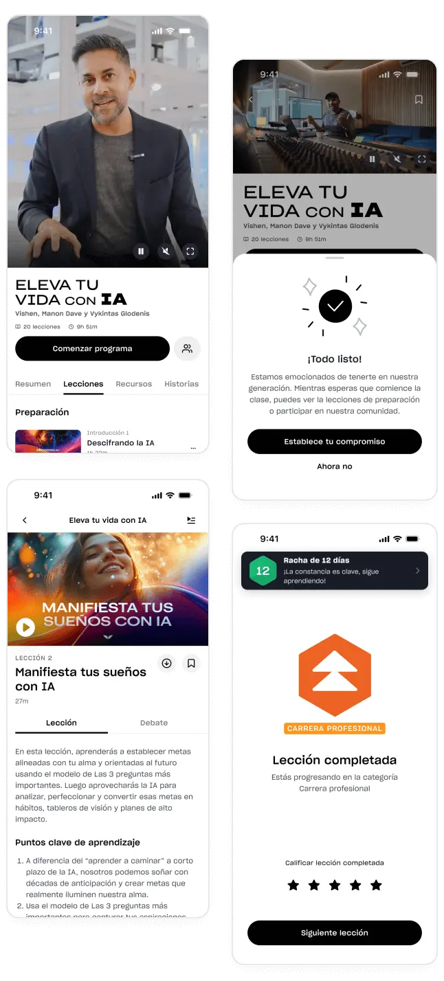 Grabado en escenarios reales y envolventes, dedicarás solo 20 minutos al día para crear algo concreto: una herramienta creativa, un asistente de productividad, una coach mental o una IA personalizada que se adapta a tu vida.