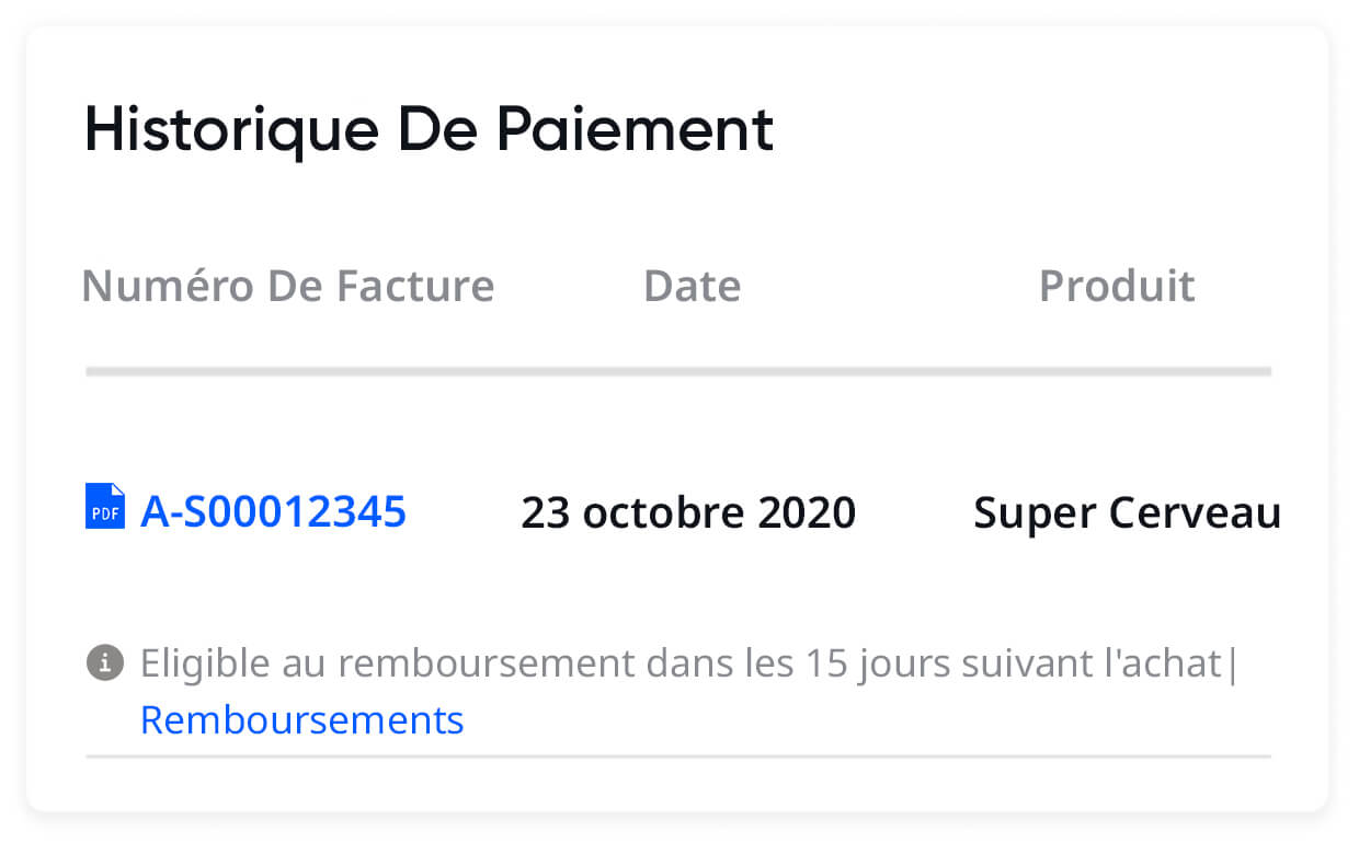 La qualité parlant d’elle-même, nous permettons à tous nos étudiants de se faire rembourser automatiquement n’importe quel programme, pour quelque raison que ce soit, dans les 15 jours suivant l’achat. Vous êtes toujours protégé(e).