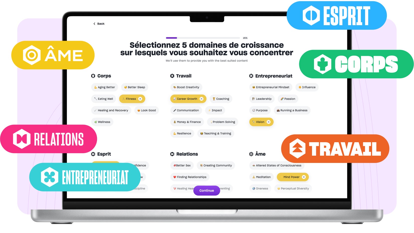 Obtenez des recommandations personnalisées pour des appels en direct, des méditations et des leçons de Quête gratuites afin d’améliorer votre vie.