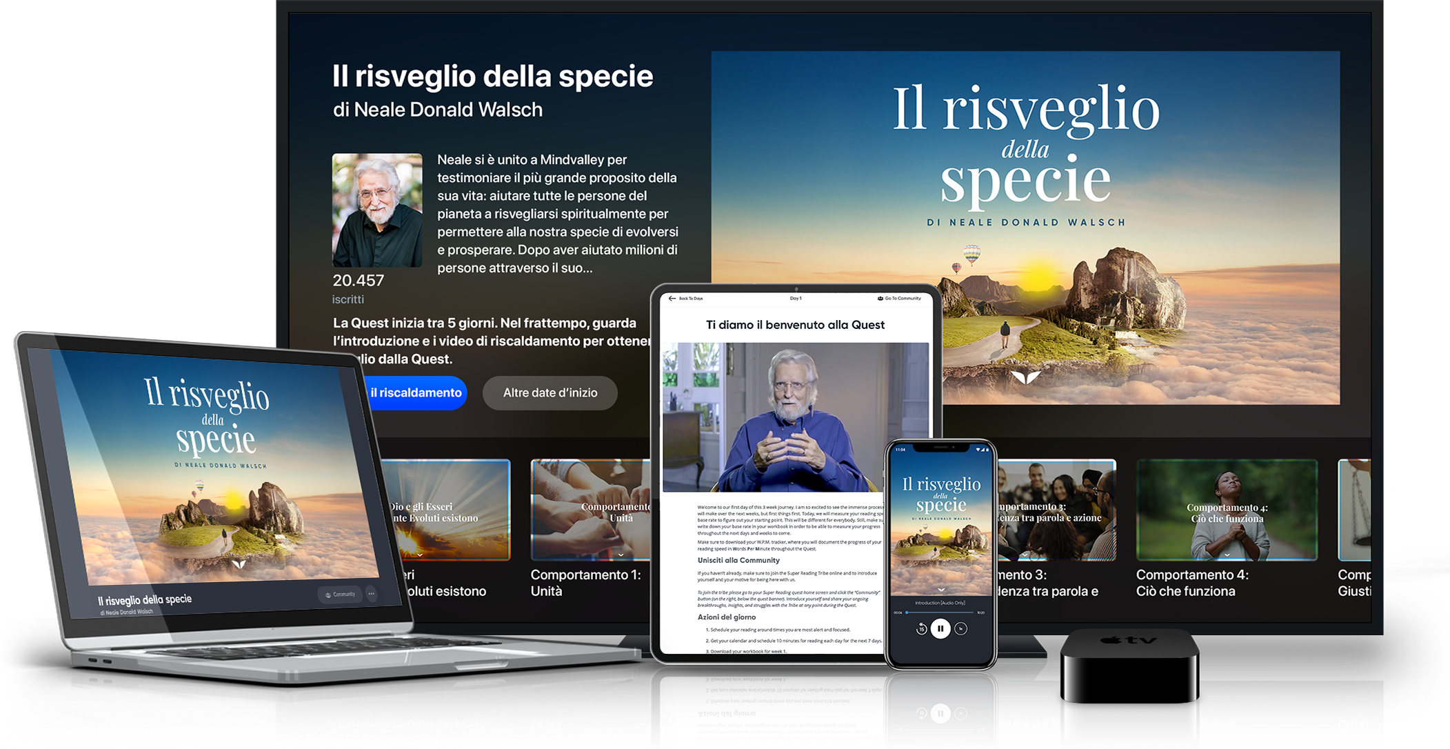 Il programma Il risveglio della specie di Neale ti guida attraverso ogni fase di questo processo, in modo che tu possa finalmente trascendere il dolore e le tue battaglie. Risveglia il tuo potenziale umano più completo. E abbraccia la tua vita come un Assere Altamente Evoluto.