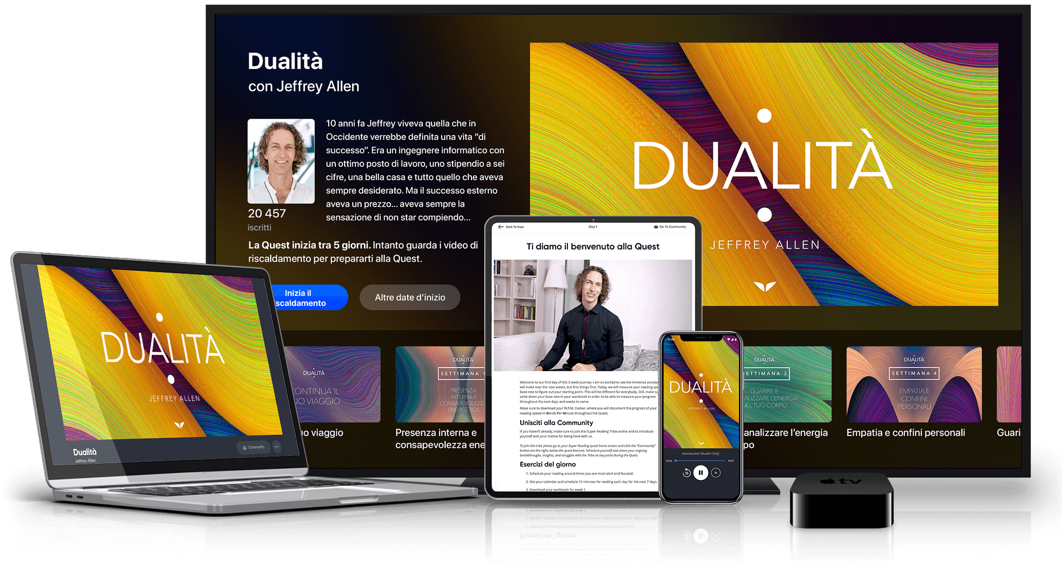 Nel programma Dualità, l'acclamato guaritore energetico Jeffrey Allen ti guida a scoprire il tuo corpo di energia e a entrarvi in connessione, in modo da poter risvegliare un ulteriore stato di auto-controllo, coscienza spirituale, e felicità emotiva grazie all'allineamento del piano fisico e di quello energetico.