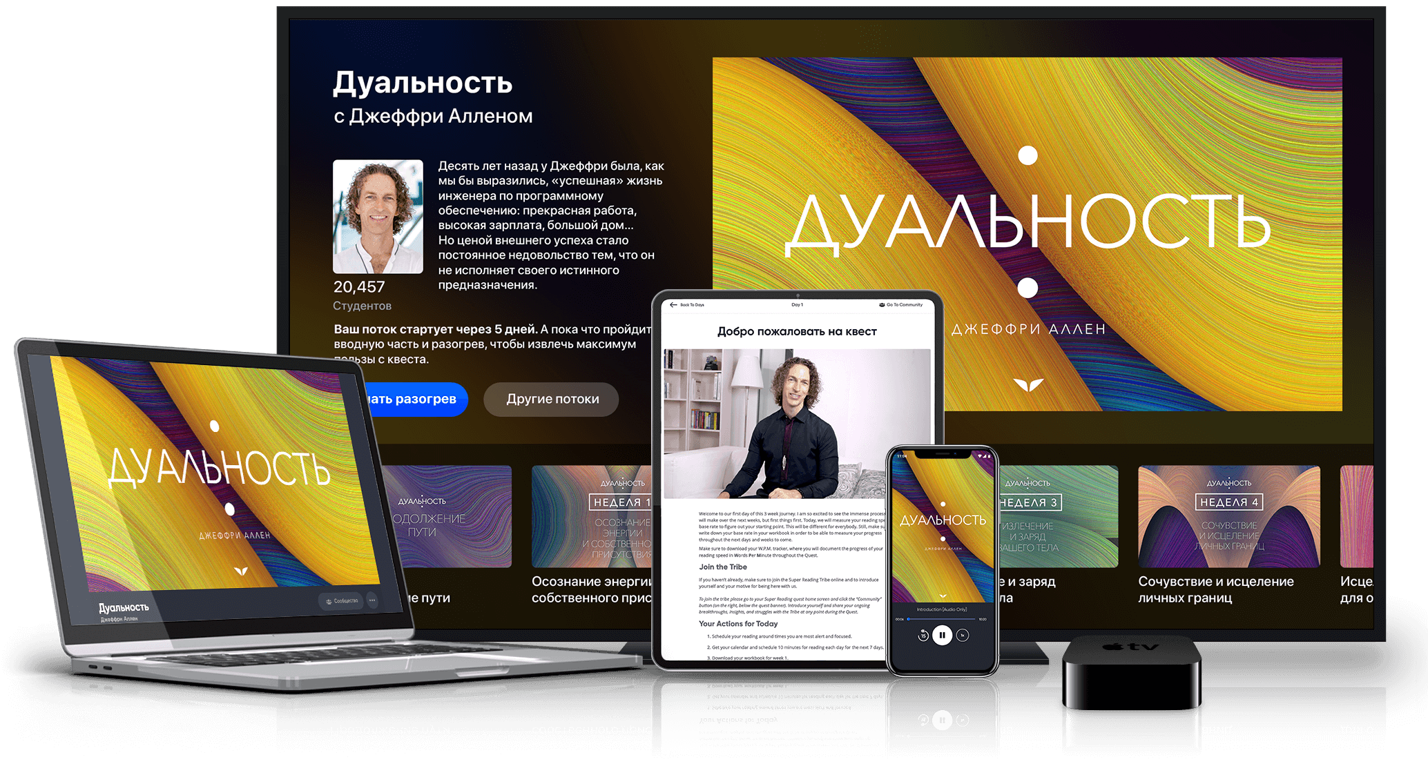«Дуальность» — это инструмент для овладения своим энергетическим телом под руководством выдающегося энергетического целителя Джеффри Аллена. Установите связь с невидимой частью себя, пробудитесь к высшим состояниям осознанности и эмоционального блаженства, достигните гармонии с собой как в энергетическом, так и физическом плане.
