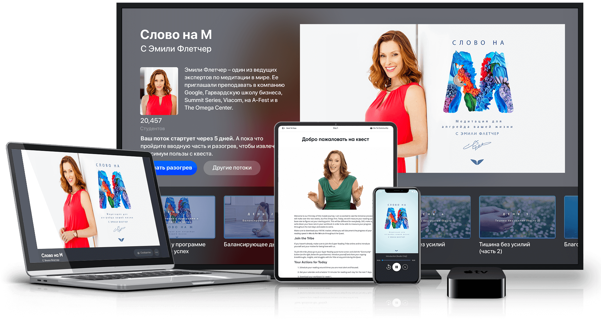 Ваш наставник на этом пути создательница этого оптимизированного подхода — Эмили Флетчер, один из ведущих мировых экспертов по медитации. Добро пожаловать на квест «Слово на М».