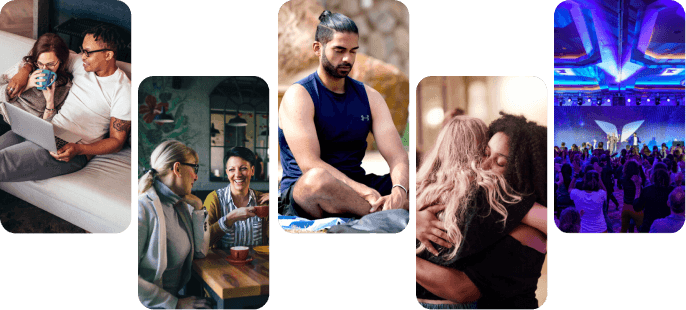 Ощутите магию «живых» встреч Mindvalley. Присоединяйтесь к глобальным мероприятиям, таким как Университет Mindvalley, или к тысячам локальных встреч.