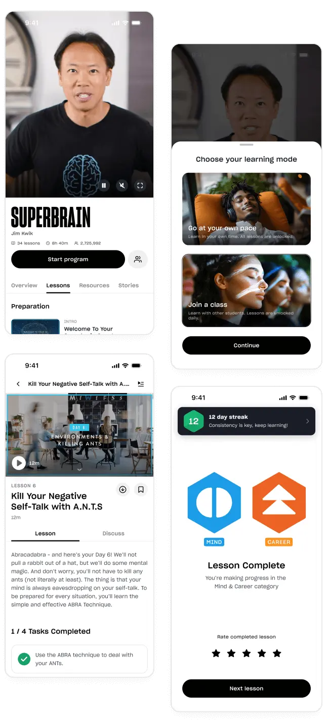 Discover the science-backed speed reading hacks Jim Kwik taught to the likes of Elon Musk and Will Smith to absorb, retain, and recall more information. Read 2-3X faster without sacrificing comprehension—finish books in hours that used to take days.
