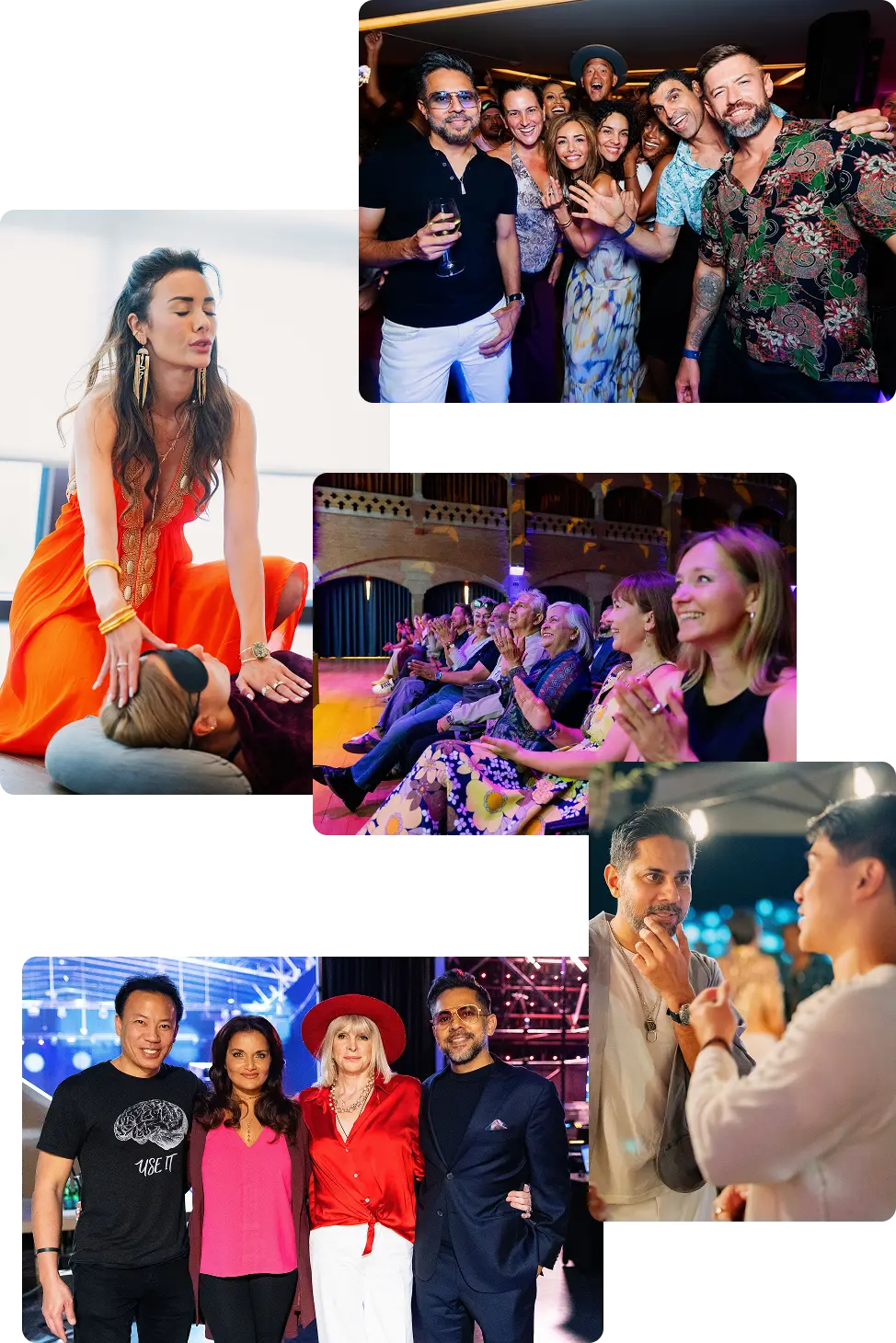 Step into intimate sessions with selected speakers designed for deeper conversation, meaningful connection, and powerful breakthroughs. First Class guests are also invited to a post-event mastermind session to integrate their learnings.