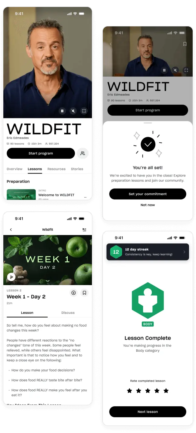 Tap into bite-sized Q&A videos where Eric answers the most common challenges 500,000+ WildFit students have faced. Weight stalled at Week 7? Craving sugar on Day 4? Family sabotaging your progress? Traveling and panicking about food options? Someone's already been through your exact struggle - and this vault gives you their solution in under 3 minutes.